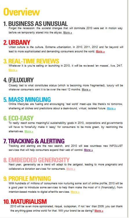 Take a look at these ten consumer trends that will inspire you to introduce new products and services over the next 12 months.