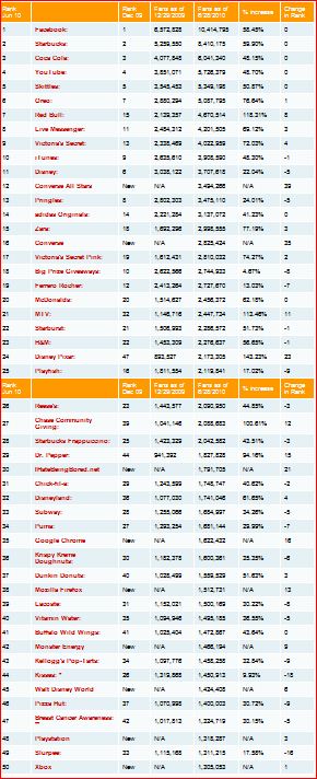- The top five brands of 2009 remain the top five brands of 2010, in the same order no less!