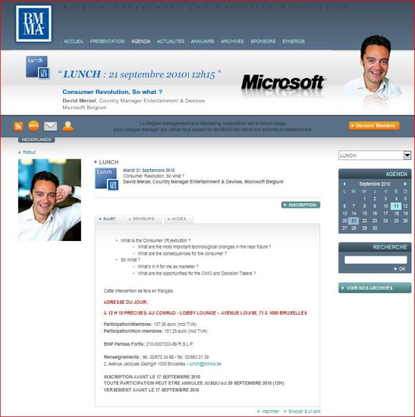 I will make a presentation at next BMMA Lunch (Belgian Management and Marketing Association), 21 Sept 12.15