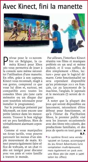 Press Coverage in “l’Avenir” : “Avec Kinect, fini la manette”