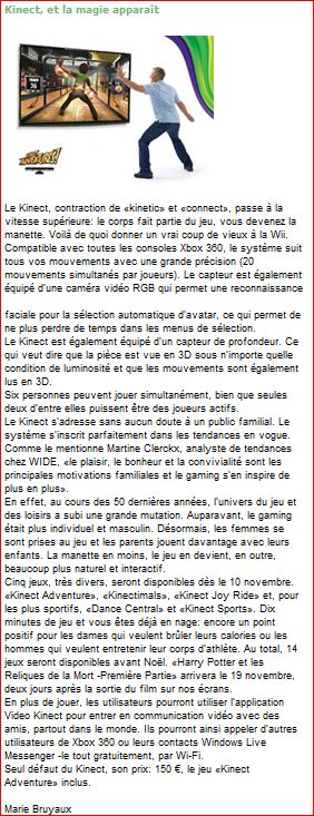 Press Coverage : “Metro : Kinect, et la magie apparaît.
