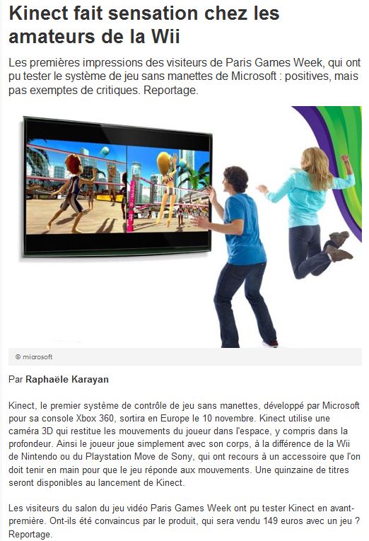 Read full article on : http://trends.rnews.be/fr/economie/actualite/high-tech/kinect-fait-sensation-chez-les-amateurs-de-la-wii/article-1194859074532.htm