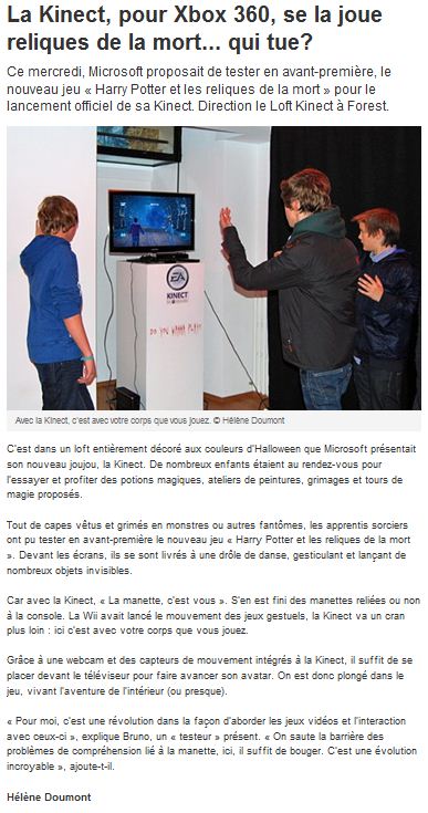 Kinect in Vif : “La kinect se la joue reliques de la mort … qui tue ?”