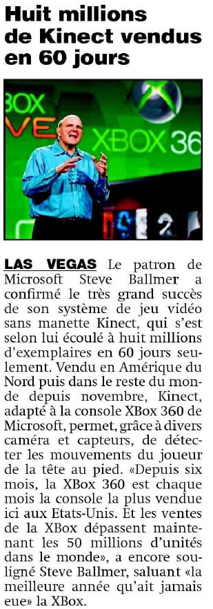 #Kinect in Metro : “Huit Millions de Kinect vendus en 60 Jours”