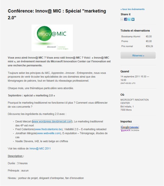 Are the 4 P’s dead ? Join next Innovation @ MIC (Mons) to know more about Marketing 2.0.