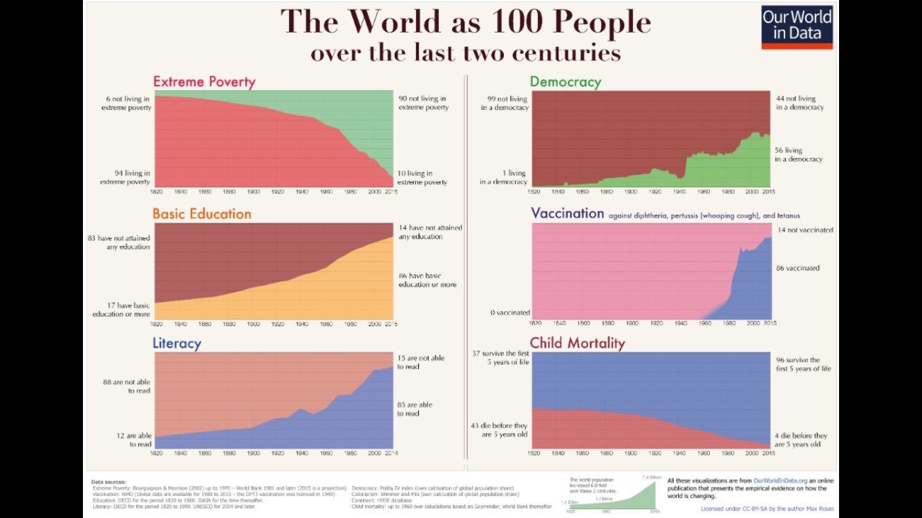 But tracing that group over 2 centuries achieves something completely different. It really does put our moment in history in perspective, in a manner that has the potential to get us to rethink our fears, our despair, and other things that make things worse when the overall trend is in a positive direction.
