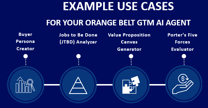 These use cases demonstrate how the Orange Belt GTM AI Agent can assist in applying more advanced frameworks for market understanding and strategic positioning, providing deeper insights and more sophisticated analyses compared to the Yellow Belt level.