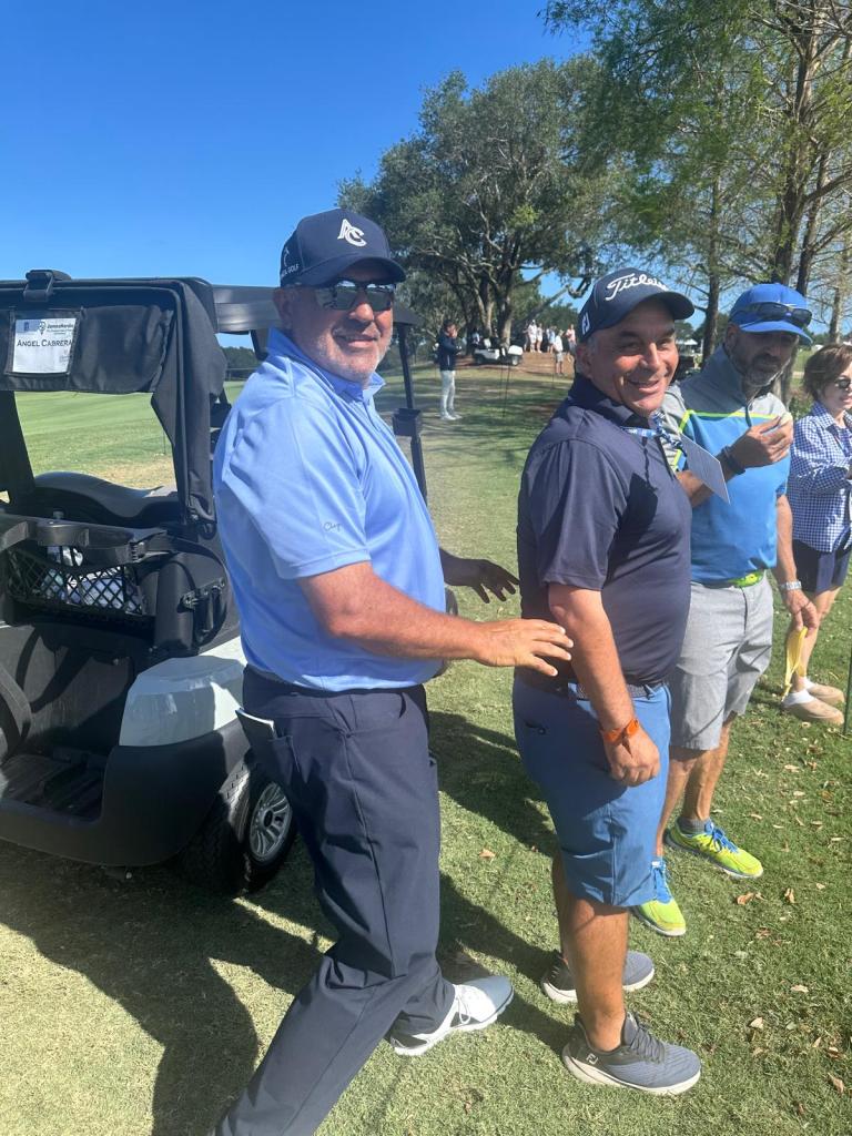 Yesterday, I had the incredible privilege of attending my first-ever PGA Tour Champions event. It was the James Hardie Pro Football Hall of Fame Invitational. The event took place at the stunning Old Course at Broken Sound in Boca Raton, Florida. What made this experience even more special was being invited by Raphael Fuchs. He is on the right below. Raphael is a dear school friend from Belgium. He is part of the James Hardie organization. I live just 20 minutes away from the venue. It felt like a dream come true to be part of such an event right in my backyard.